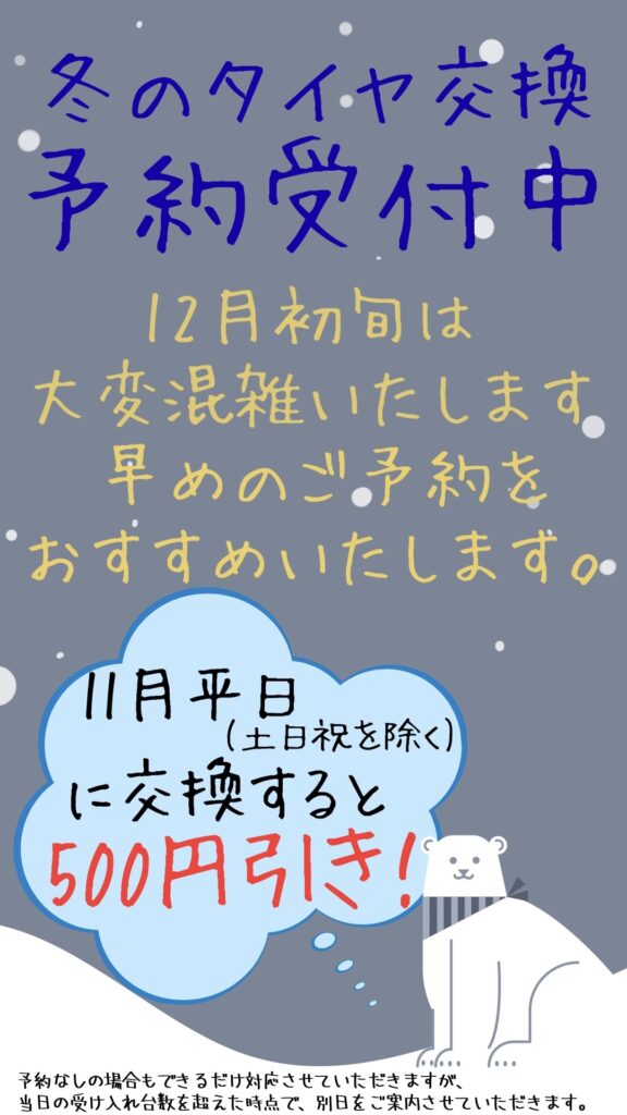冬のタイヤ交換受付中です!