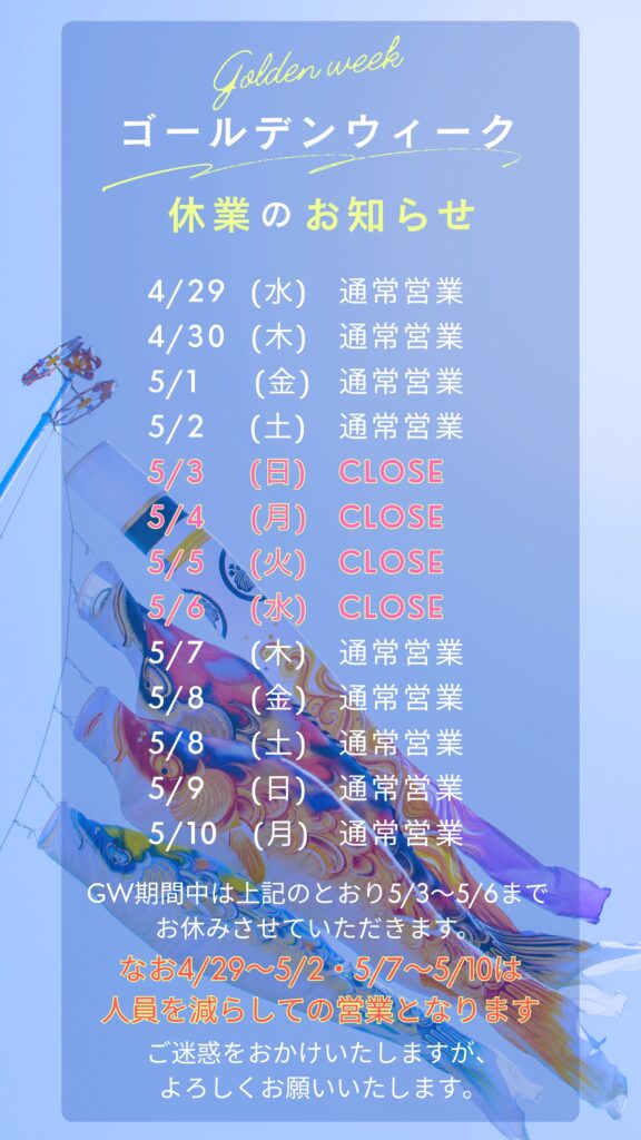 ゴールデンウイークのお知らせ